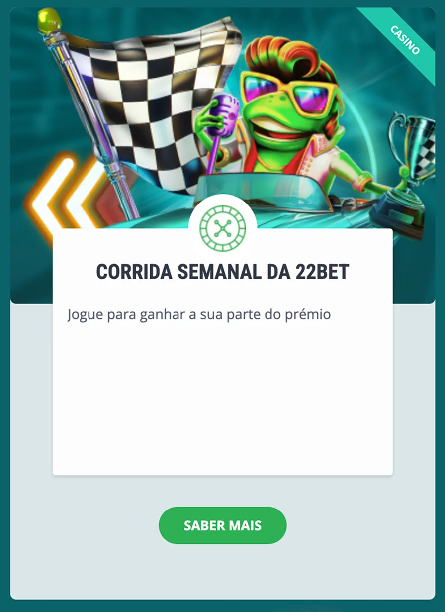 Em vez de bónus de recarga diretos, o casino 22Bet opta por uma abordagem competitiva. A corrida semanal premeia o volume de jogo, atribuindo pontos com base no montante apostado.